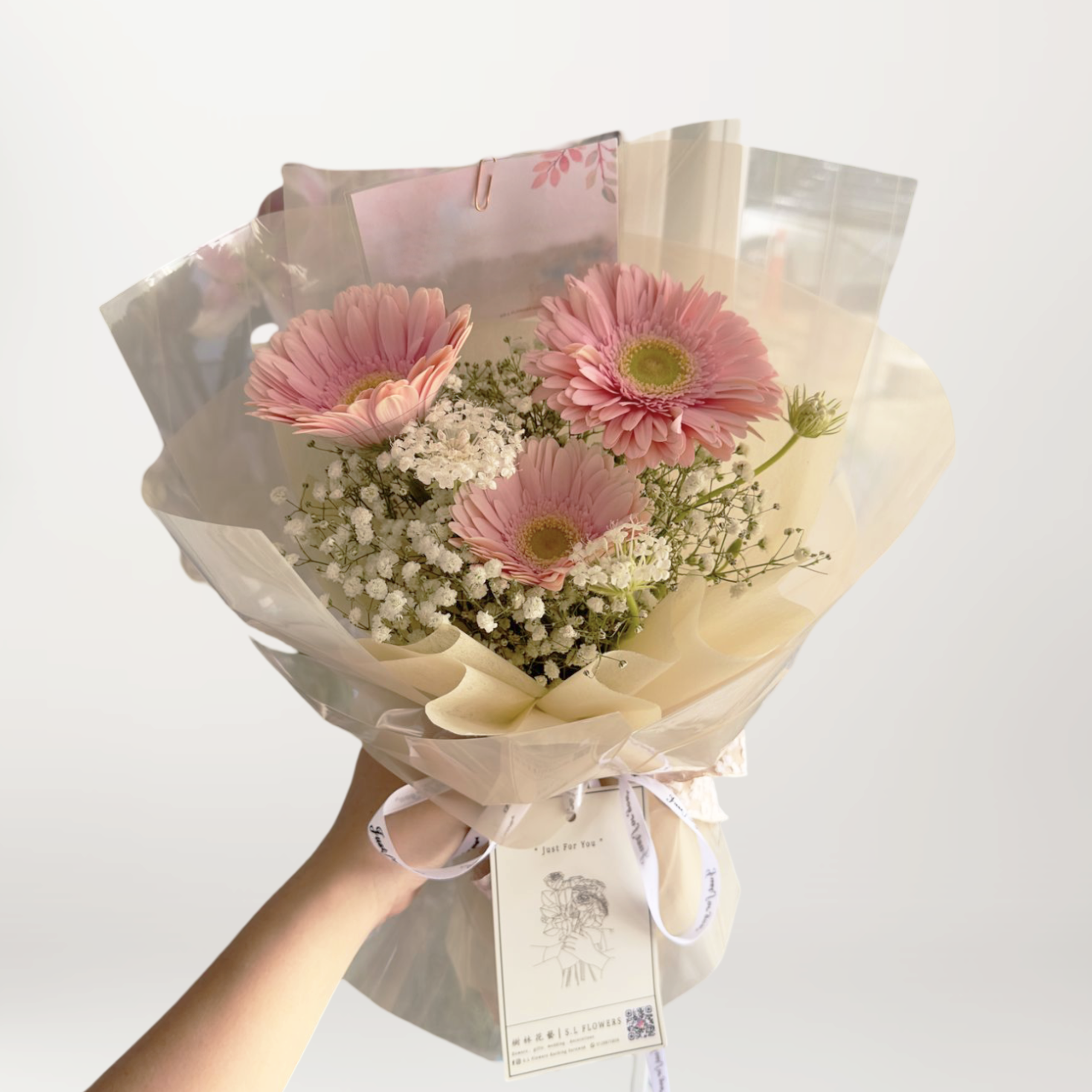 Pink Gerbera + Babybreath + Lace Flower