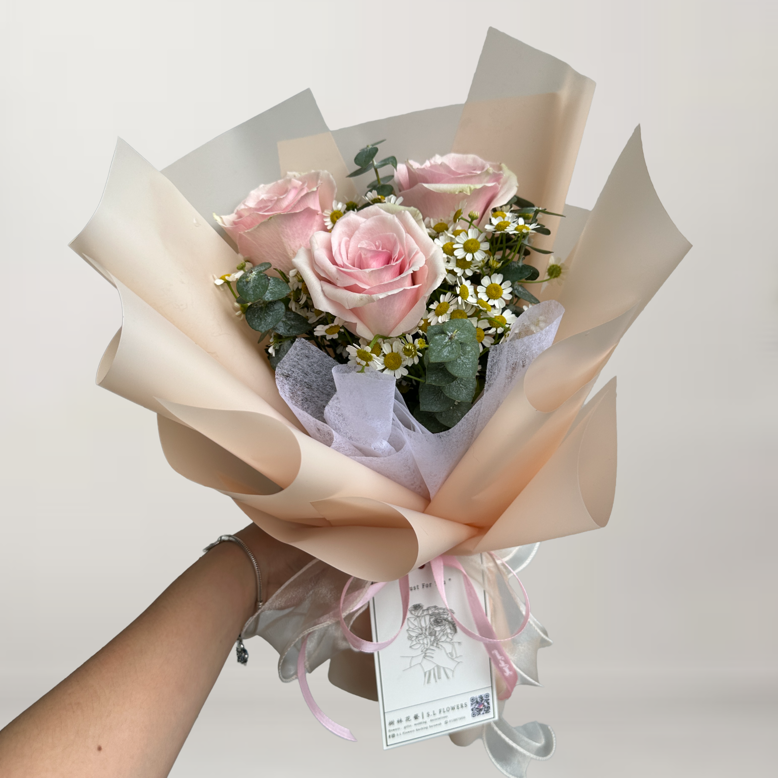 Pink Roses + Chamomile +Eucalyptus Leafs