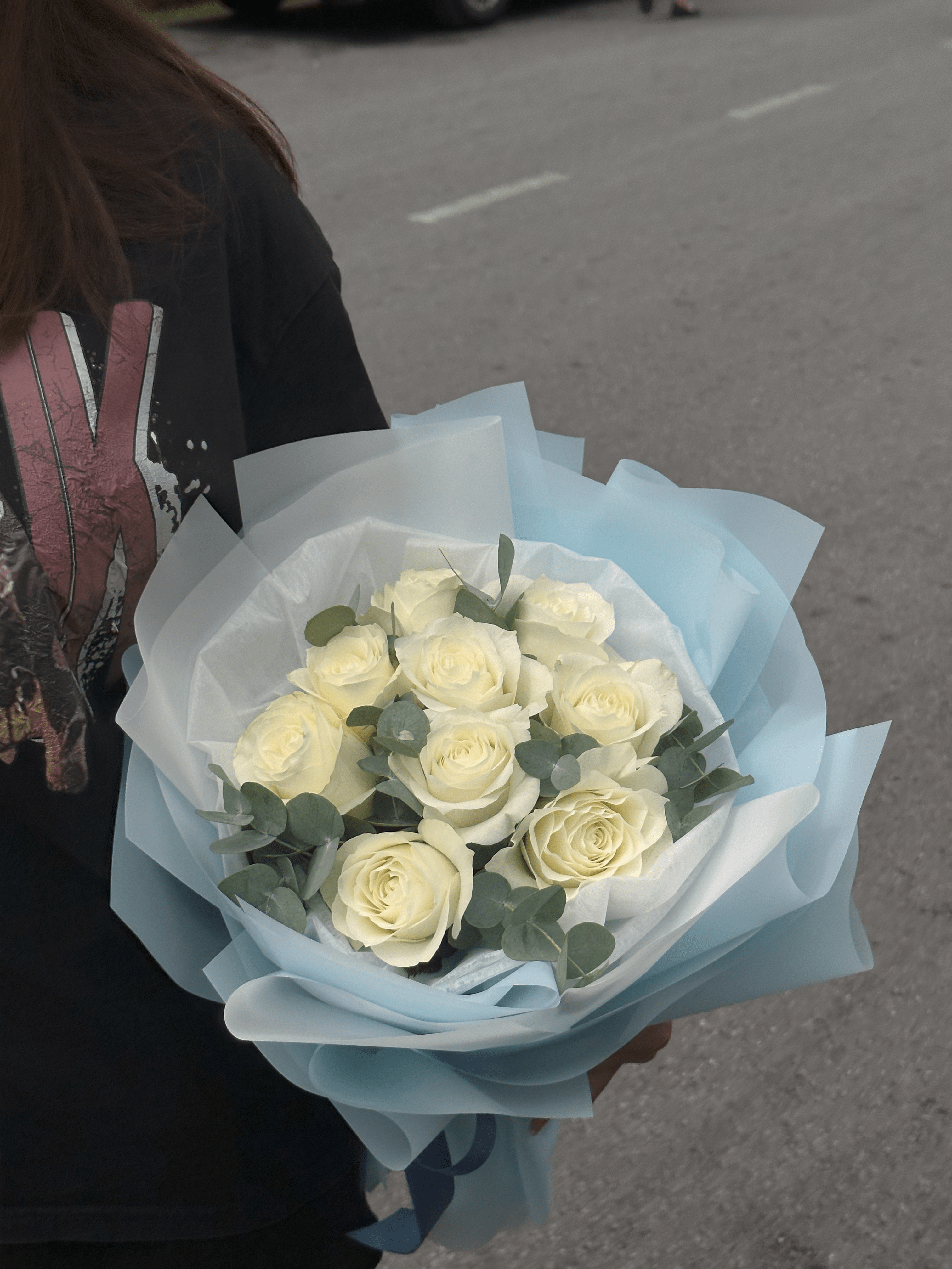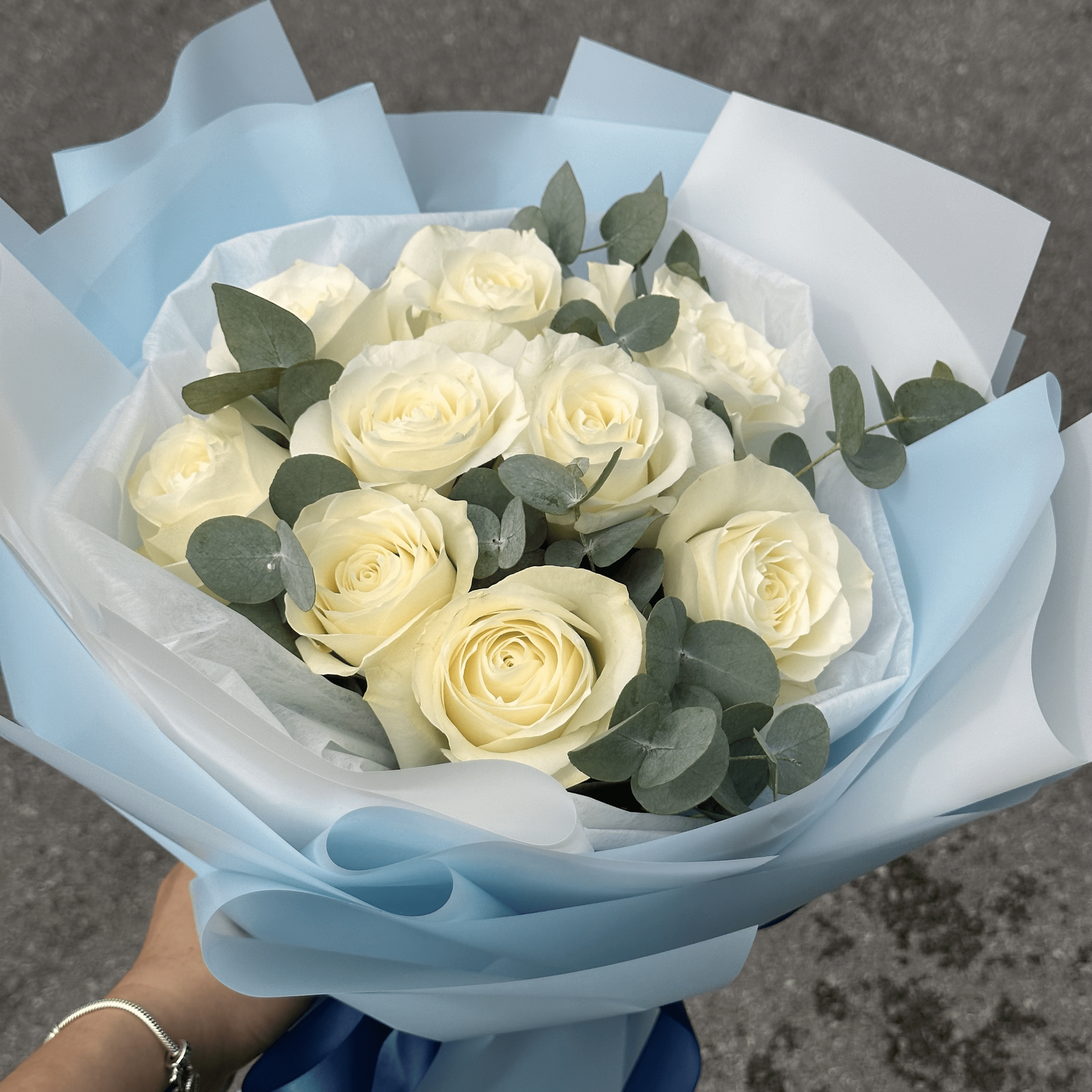 White Roses + Eucalyptus Leafs