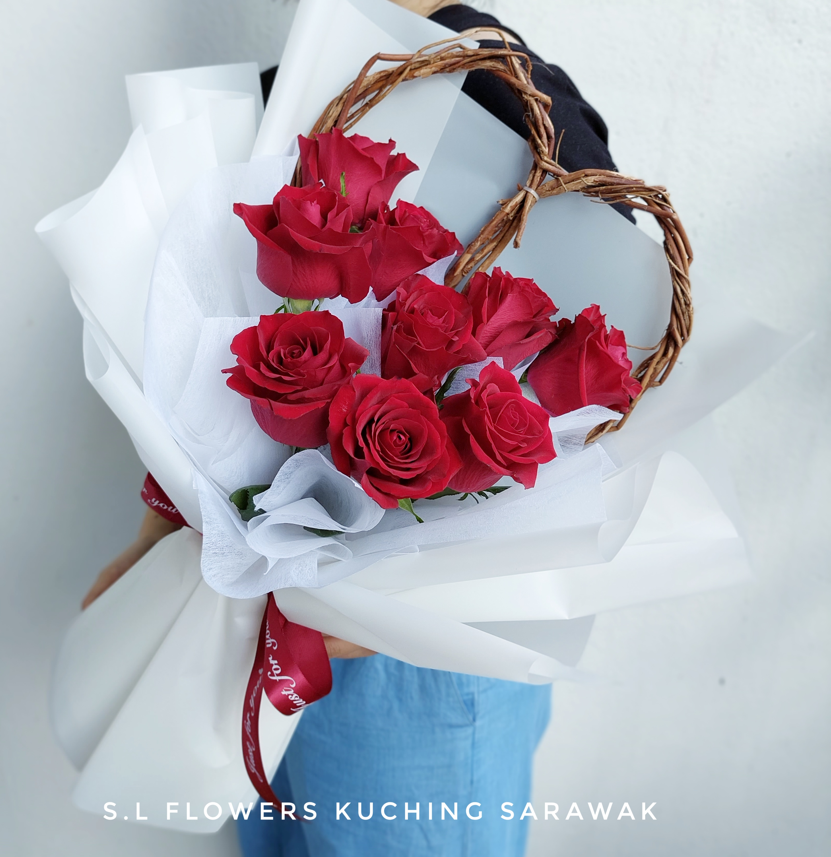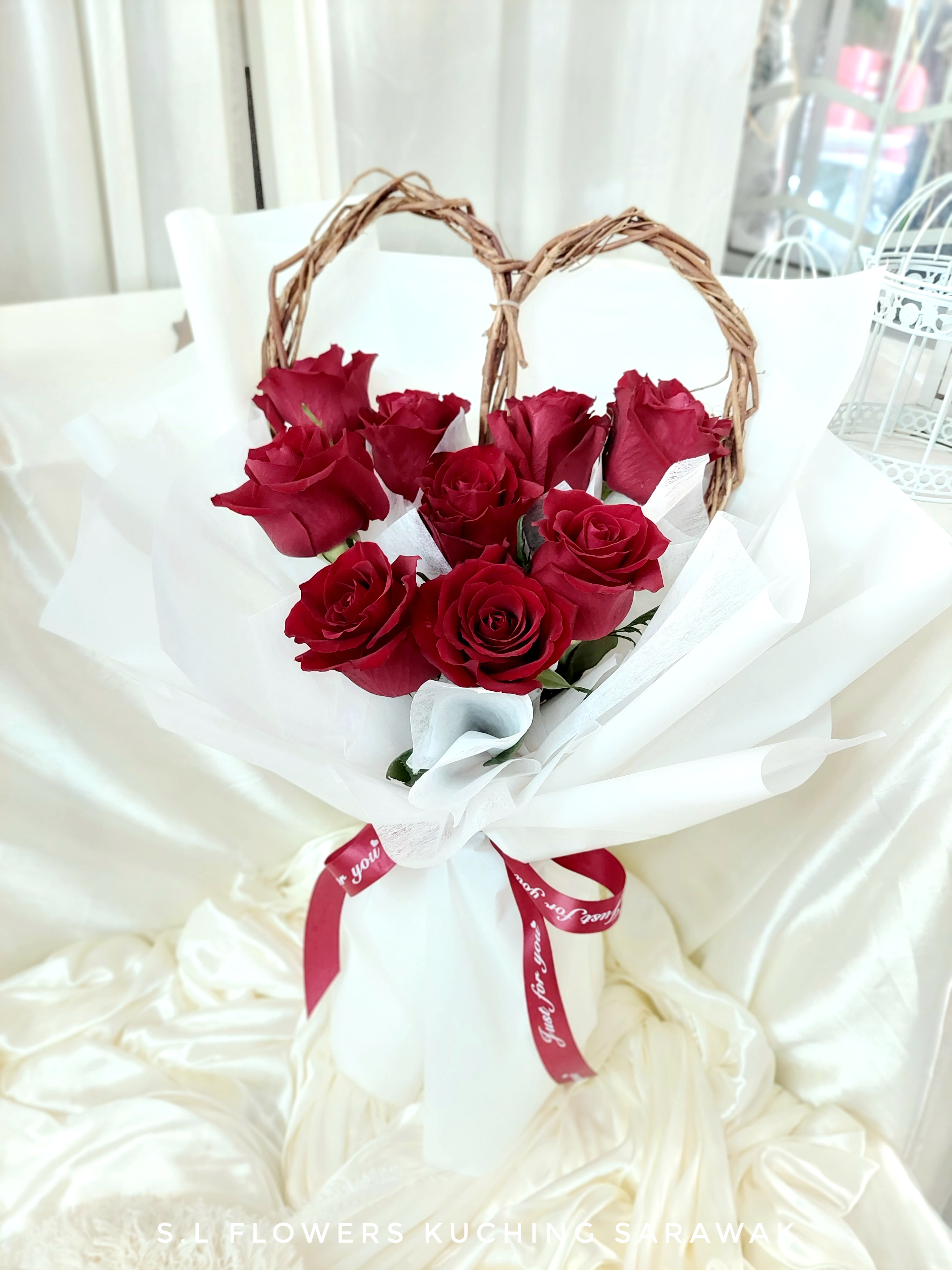 9 Roses + Love Shape Rottan