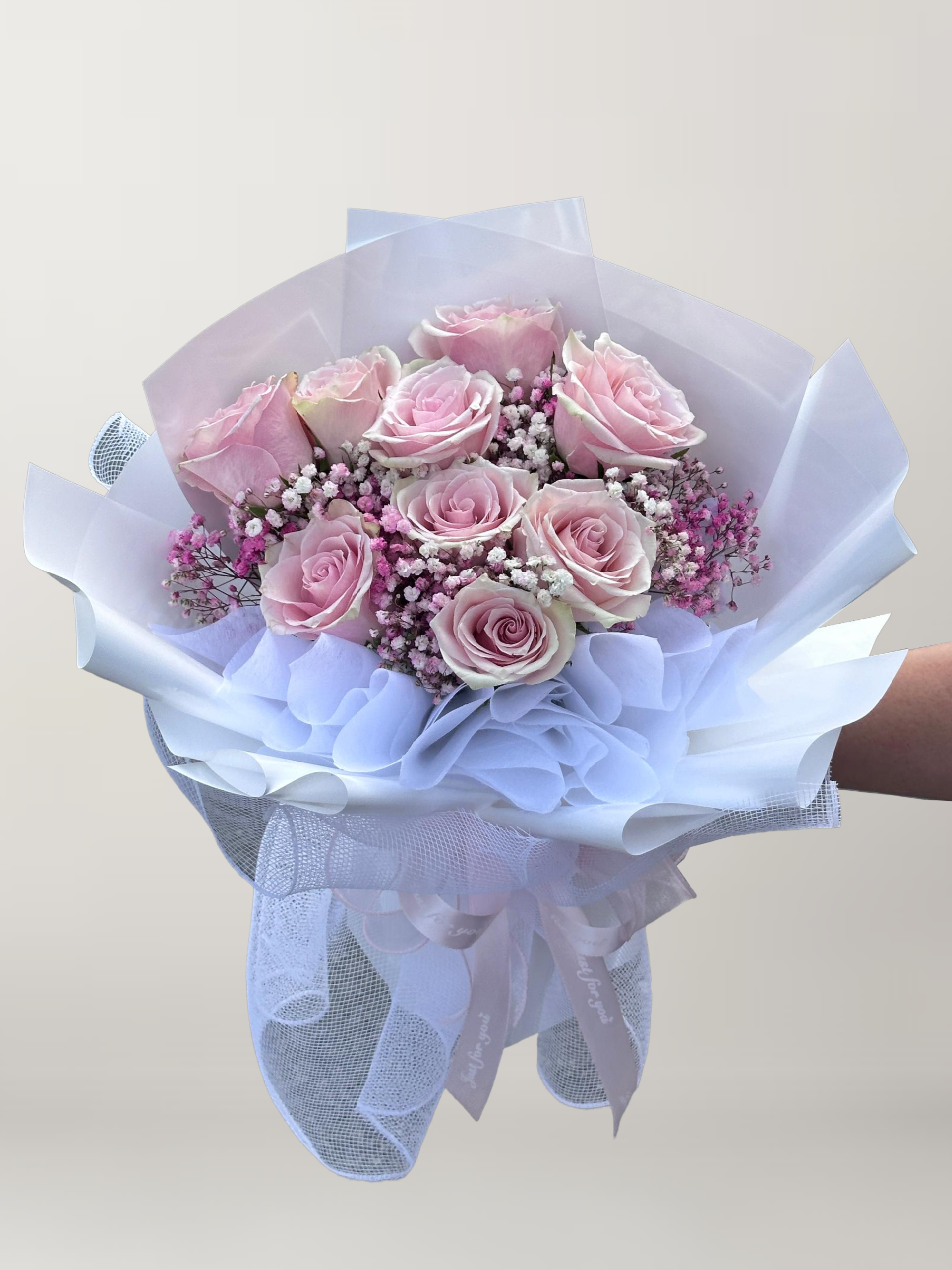 9pcs Pink Rose arranged with Pink Babybreath