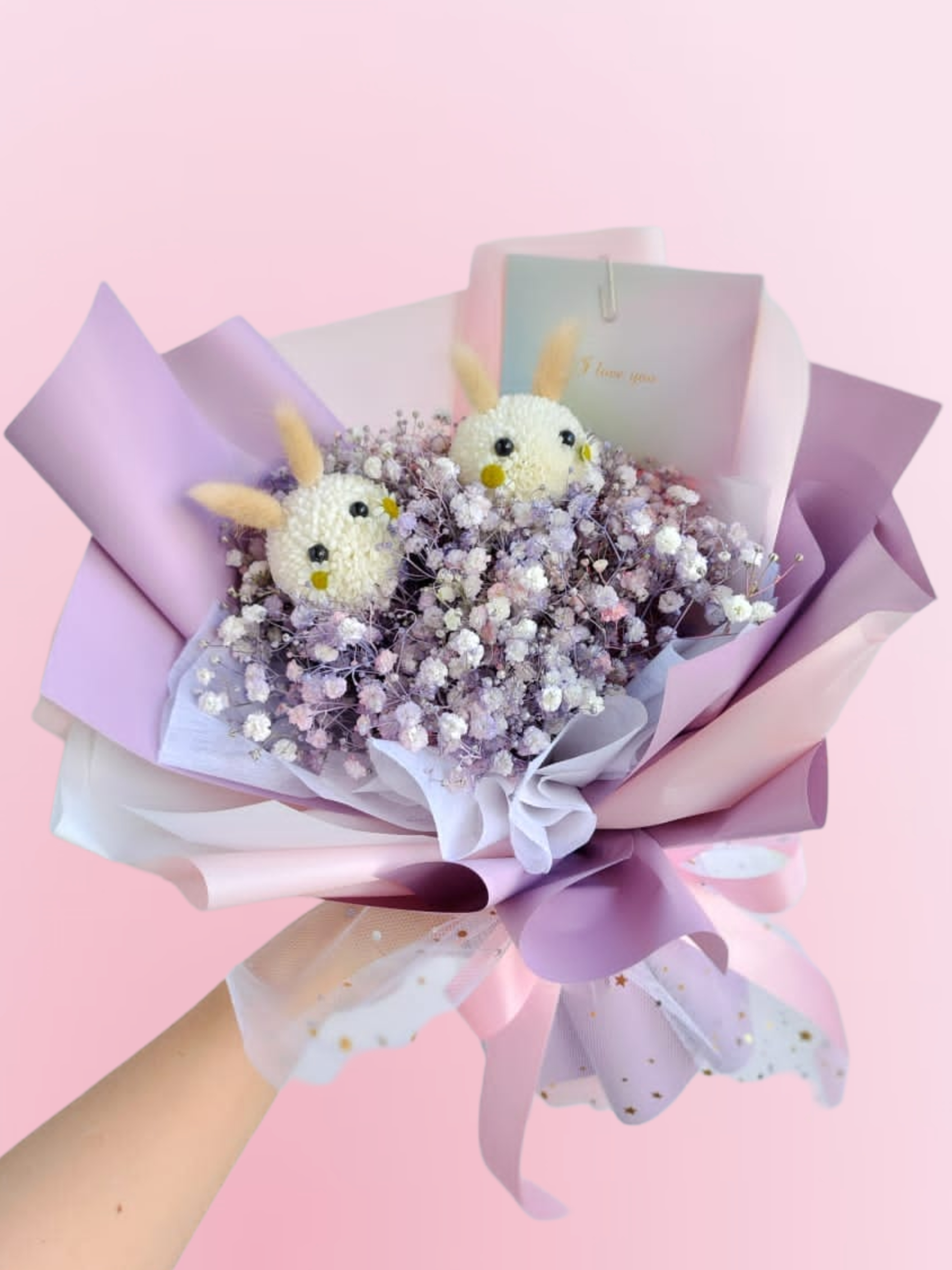 Couple Bunny Head + Babybreath ( Sprayed color )