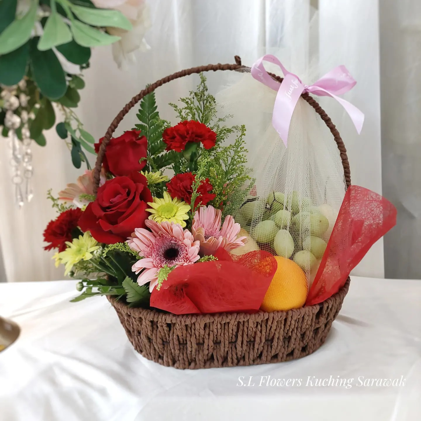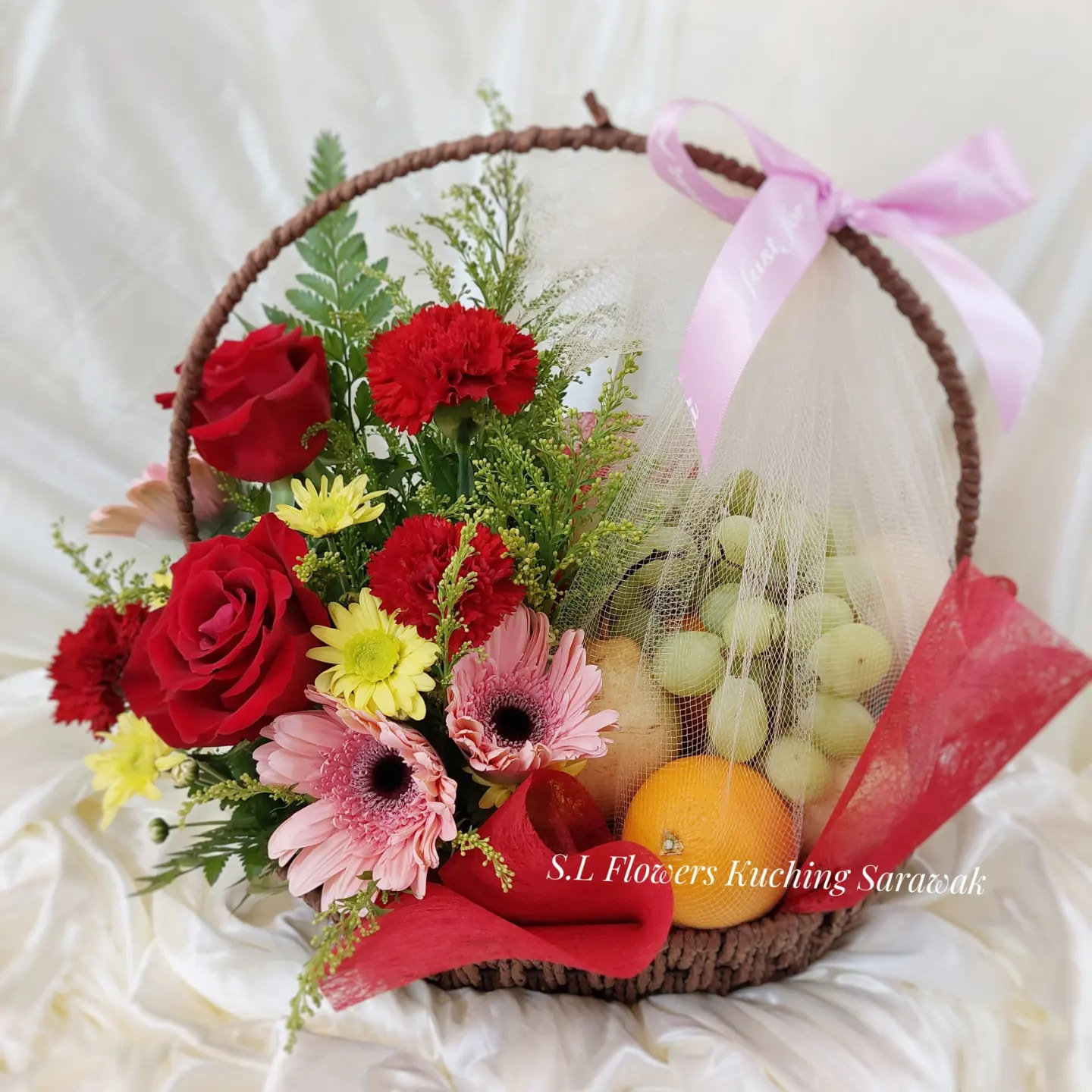 The flower colors may look slightly different from the picture. Some flowers, fruits, or other items might be replaced with similar or higher-value alternatives based on availability.